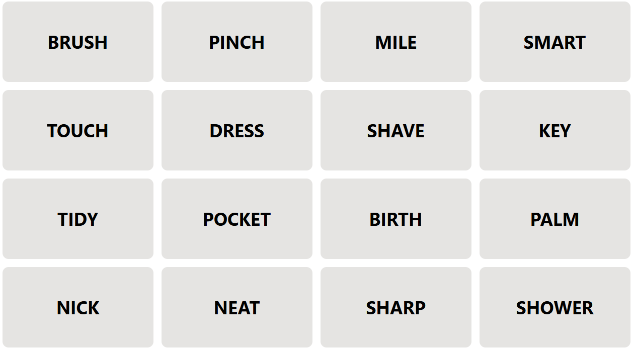 The game design within Connections inherently leads to questions and wonderments and rabbitholes of semantic similarity, e.g. would {brush, dress, tidy, neat} form a better group than {brush, dress, key, pocket}?